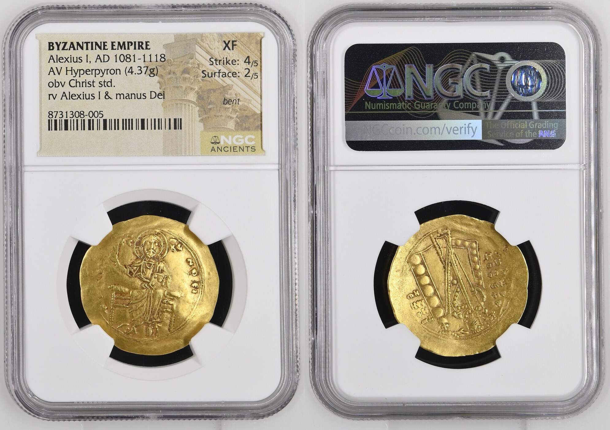 ALEXIUS I, 1081-1118. AV Hyperpyron (4.37 gms), Constantinople Mint, ca. 1092/3-1118. NGC EF, Strike: 4/5 Surface: 2/5. Bent.