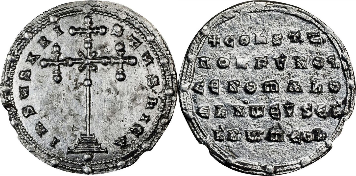 CONSTANTINE VII with ROMANUS II, 913-959. AR Miliaresion (2.63 gms), Constantinople Mint, ca. 945-959. EXTREMELY FINE. Porosity, Marks.