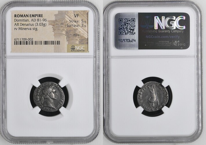 DOMITIAN, A.D. 81-96. AR Denarius (3.03 gms), Rome Mint, ca. A.D. 87. NGC VF, Strike: 5/5 Surface: 3/5. Marks.