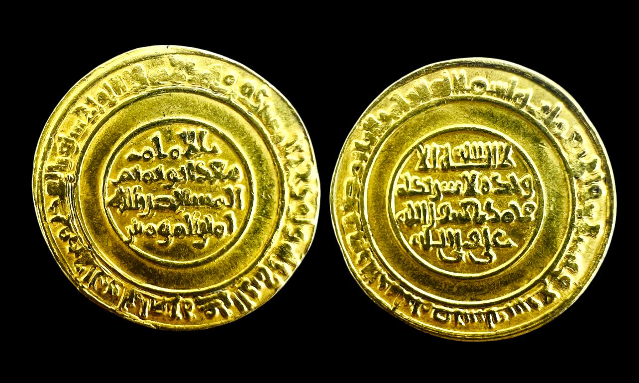 Fatimids. al-Zahir li-I‘zaz Din Allah. AH 411-427 / AD 1021-1036. AV Dinar (23mm, 4.24 gm). Misr mint. Dated AH 427 (AD 1034/5). Nicol 1536; Album 714.3. Slightly wavy flan. VF.