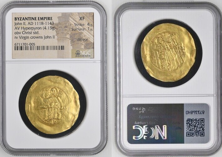 JOHN II, 1118-1143. AV Hyperpyron (4.15 gms), Constantinople Mint, 1137-43. NGC EF, Strike: 4/5 Surface: 1/5. Damage.