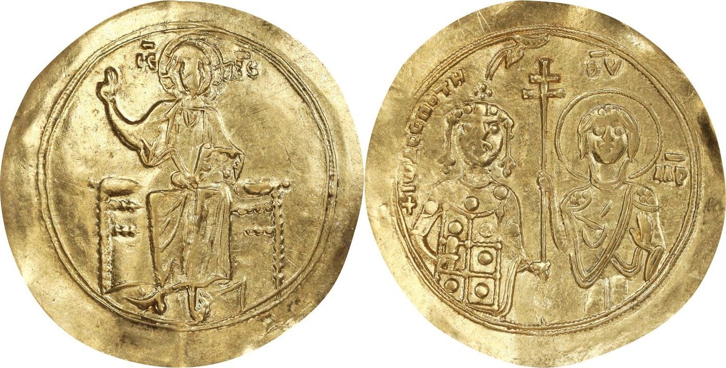 S-1938. Obverse: Christ Pantokrator seated facing on throne; Reverse: Half-length facing busts of John and the Virgin Mary, holding long patriarchal cross between them; manus Dei above.