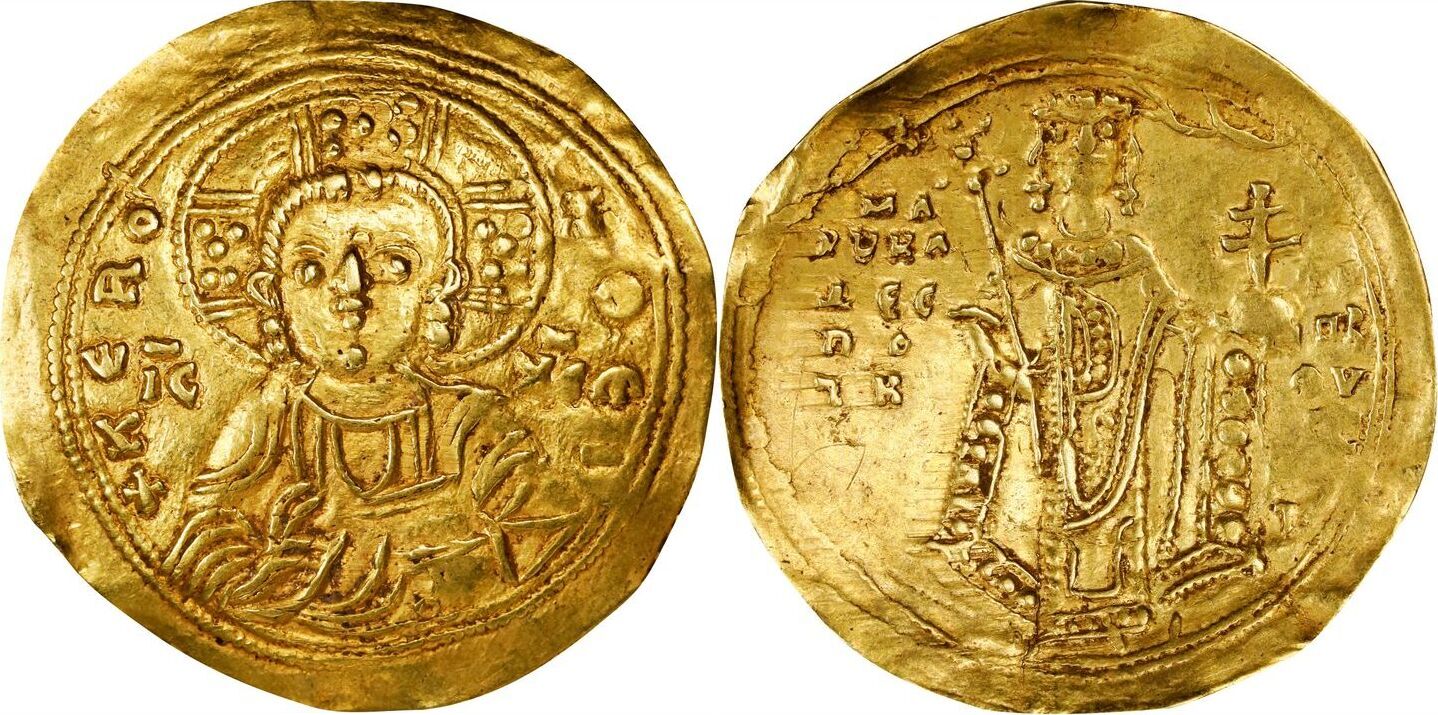 S-1956. Obverse: Bust of Christ facing; Reverse: Manuel standing facing, wearing crown, holding labarum and patriarchal globus cruciger; to upper right, manus dei. NGC photo certification.