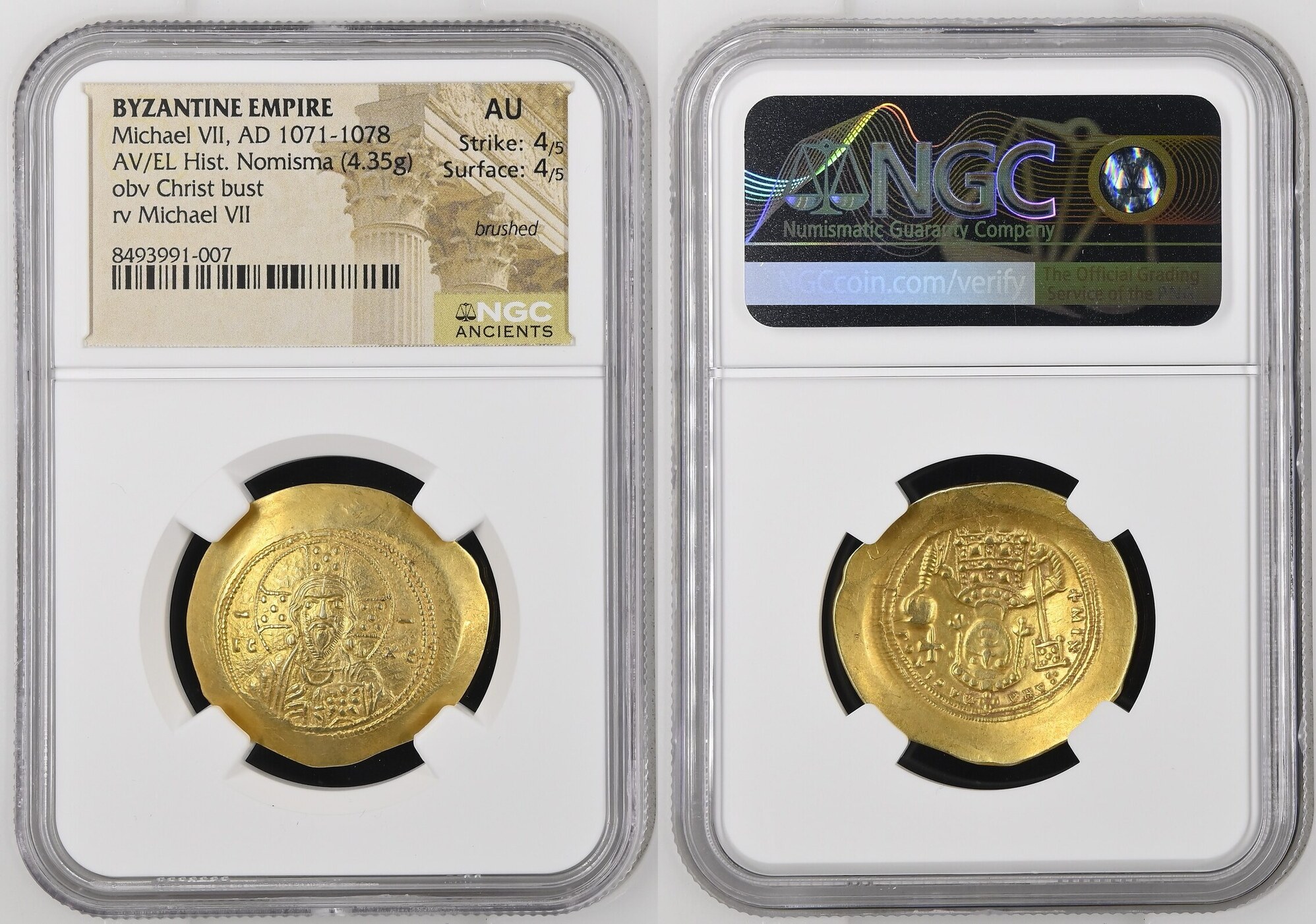 MICHAEL VII, 1071-1078. AV Histamenon Nomisma (4.35 gms), Constantinople Mint. NGC AU, Strike: 4/5 Surface: 4/5. Brushed.