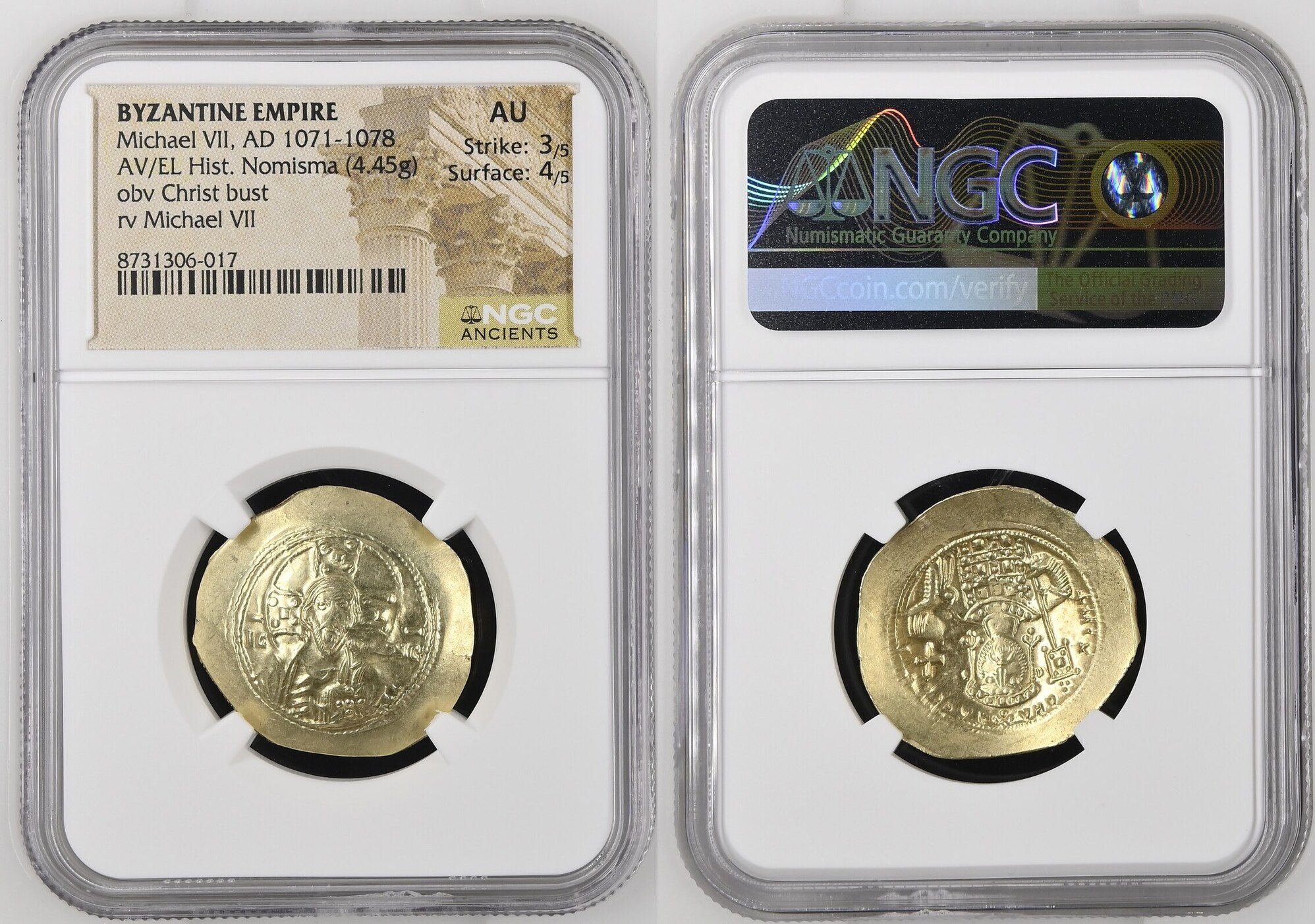 MICHAEL VII, 1071-1078. EL Histamenon Nomisma (4.45 gms), Constantinople Mint. NGC AU, Strike: 3/5 Surface: 4/5.
