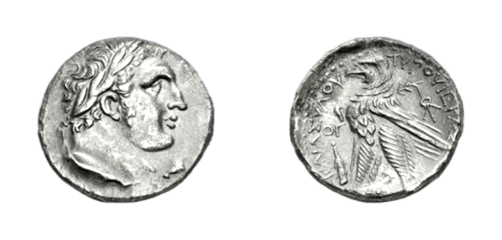 PHOENICIA, Tyre. 126/5 BC-AD 65/6. AR Shekel (28mm, 12.74 g, 12h). Dated CY 73 (54/3 BC). Laureate head of Melkart right, lion skin around neck / Eagle standing left on prow, palm frond in background; to left, OΓ (date) above club; monogram to right, Phoenician A between legs. DCA-Tyre 249 (same obv. die as illustration); HGC 10, 357; DCA2 946. Find patina, Good VF.