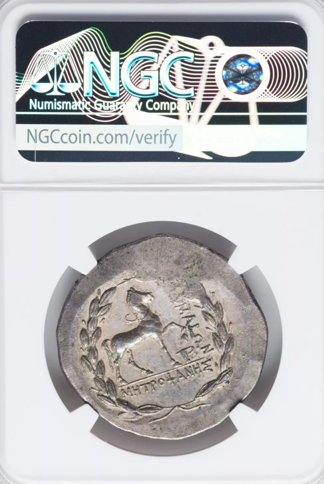 Cyme, an ancient city in Aeolis, was known for its significant contributions to the Hellenistic world. The Amazon Cyme, after whom the city was named, symbolizes the city’s mythological and cultural heritage. The presence of a horse on the reverse underscores the importance of horse breeding and equestrian culture in Cyme. The laurel wreath, a common symbol of victory and honor, reflects the city’s aspirations and achievements during this period.
