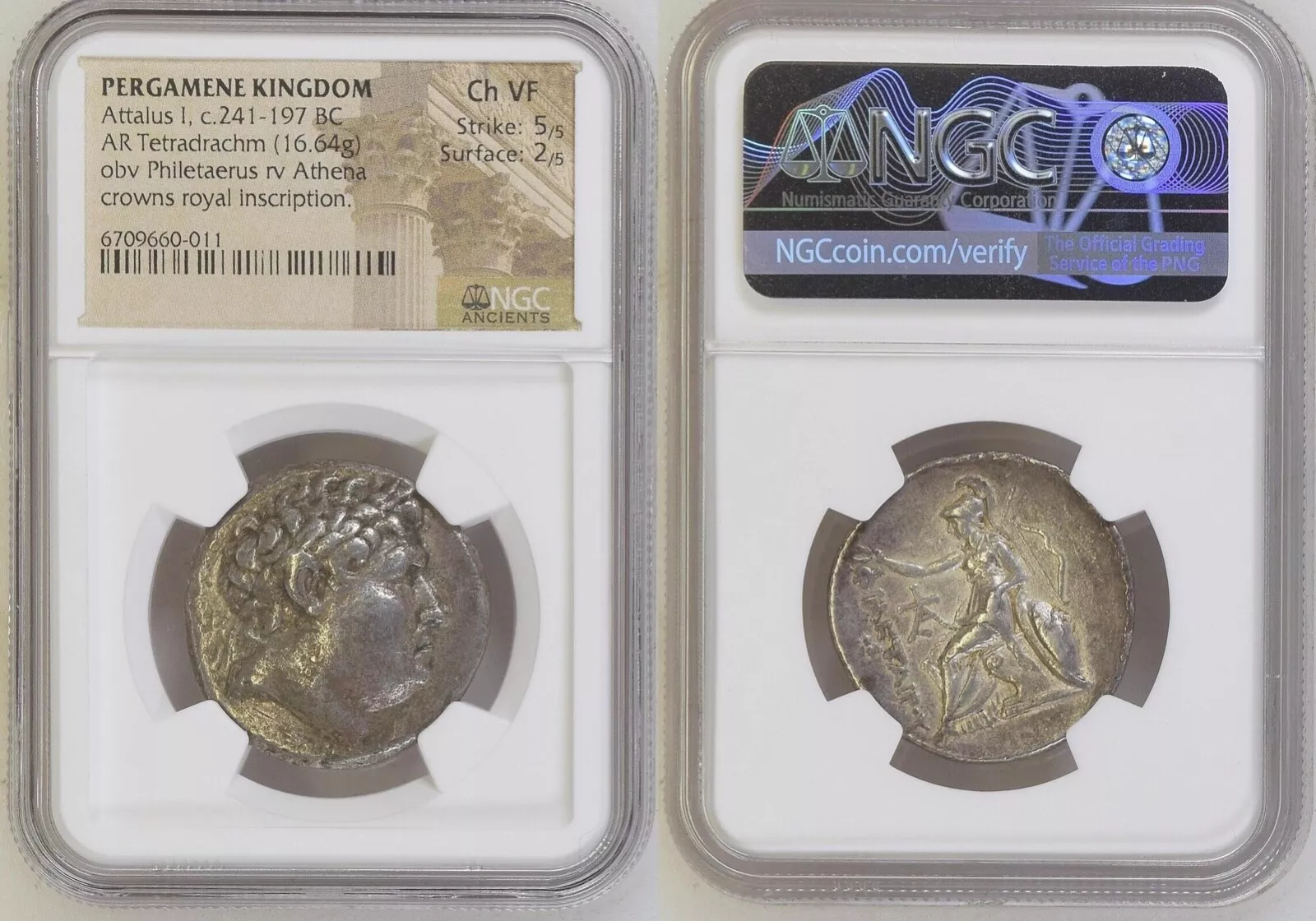 Historical Context: Attalos I, ruling from 241-197 BC, issued coins in the name and image of his predecessor Philetairos, thereby continuing to honor his contributions and maintain his legacy. This tetradrachm is a rare and pleasing strike from this period, reflecting the artistry and political sentiments of the era.
