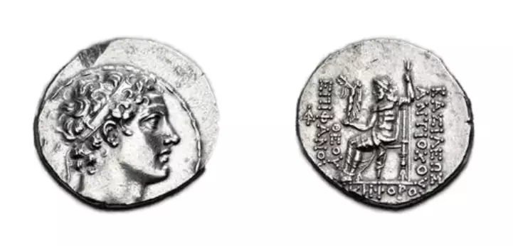 SELEUKID EMPIRE. Antiochos IV Epiphanes. 175-164 BC. AR Tetradrachm (32mm, 16.69 g, 12h). Antioch on the Orontes mint. Series 3, struck 168-164 BC. Diademed head right / Zeus Nikephoros seated left; monogram to outer left. SC 1400a; Le Rider, Antioche, 288–309 (obv. die A31); HGC 9, 620a. Bright surfaces, flan flaw on obverse. Good VF. SKU SDL